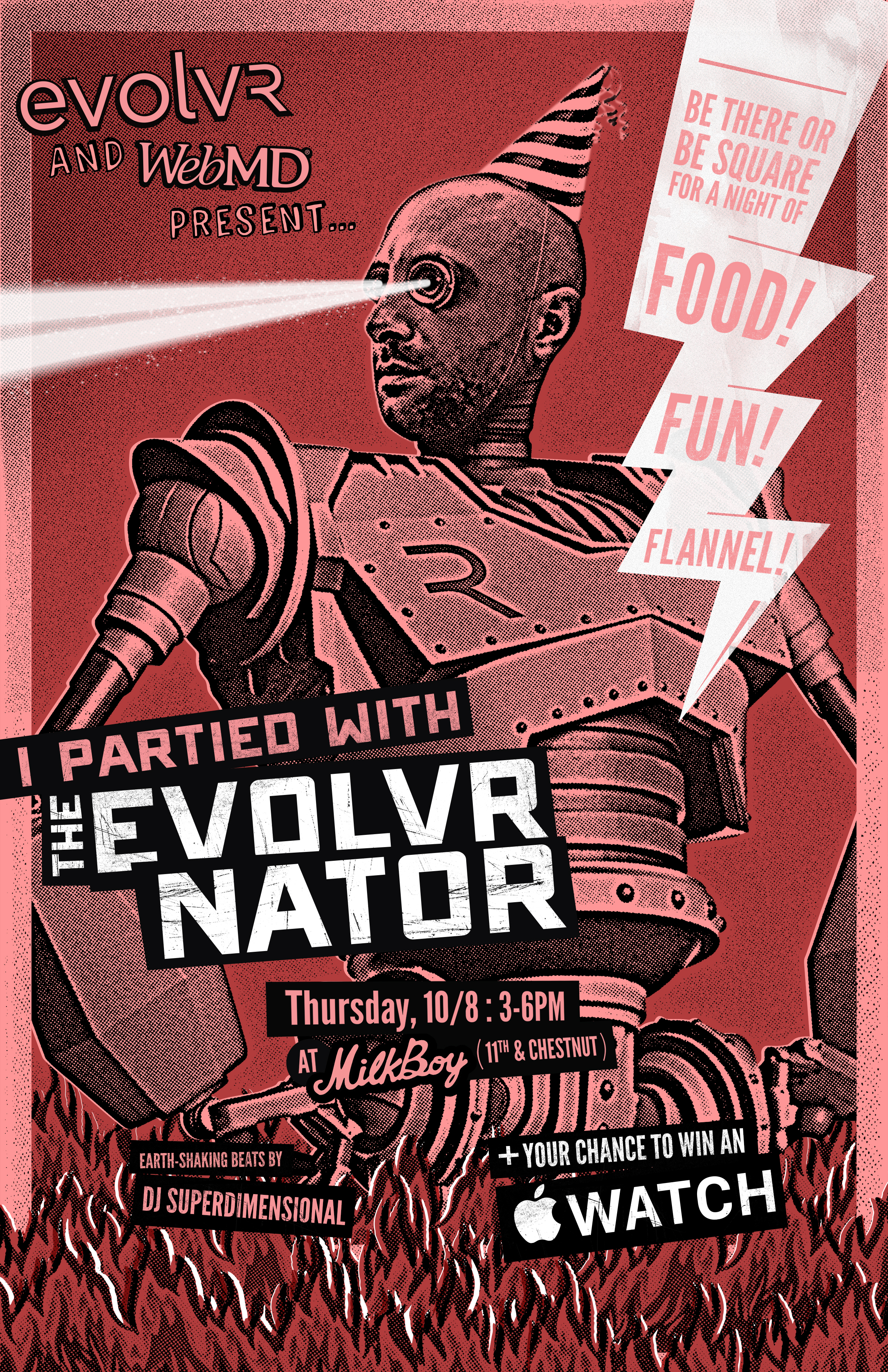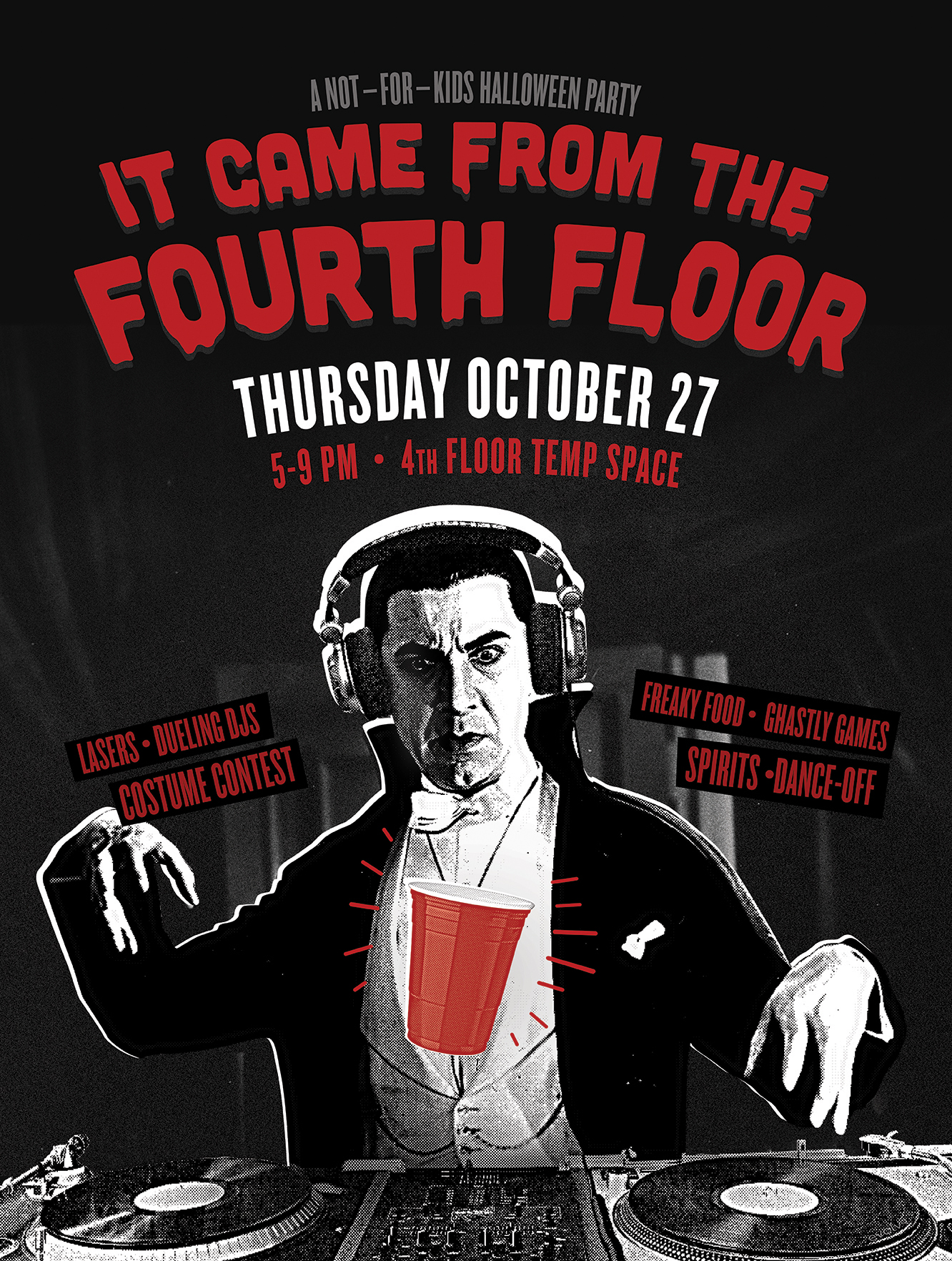 What happens when you give this designer carte blanche to create the agency party posters? Laser-shooting robots, an octopus trolling pong cups, and Bela Lugosi spinning records.